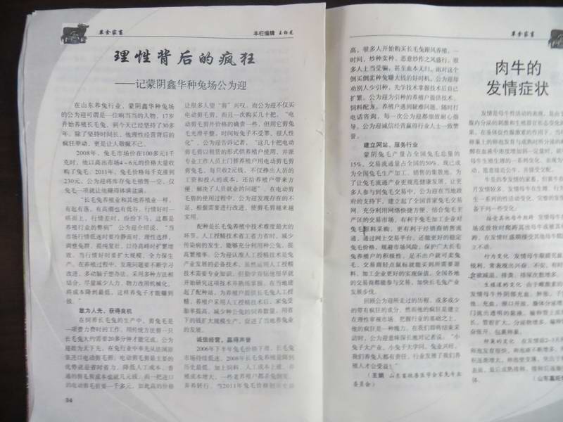 2008年,兔毛市場價(jià)在100多元1千克時(shí),他以高出市場4-6元的大量收購了兔毛。2011年,兔毛每千克漲到230元,公為迎將庫存兔毛銷售一空,僅兔毛一項(xiàng)就讓他賺得缽滿盤滿。